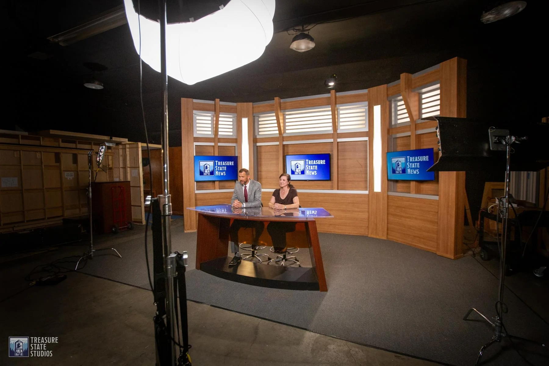 Dressed as a news desk, the set delivers the polished & sleek look of a national broadcast. Perfect for anchor-led segments, breaking news updates, or panel discussions that demand credibility and impact.